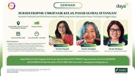 Selama menjadi nasabah SMBC Indonesia, saya banyak dibimbing oleh tim Daya, mulai dari pameran, coaching, dan banyak pelatihan online maupun offline.