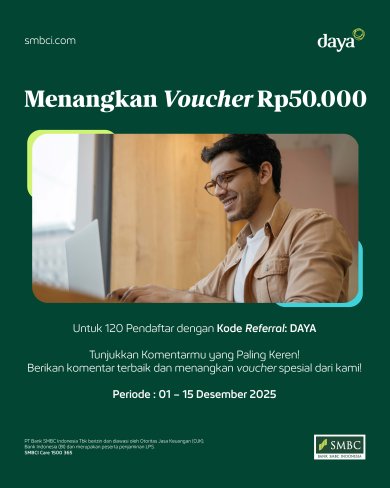6. Peserta wajib membaca dan mengikuti petunjuk redeem e-voucher dari Daya. Kegagalan dalam proses redeem e-voucher di luar tanggung jawab SMBC Indonesia dan pihak penyelenggara