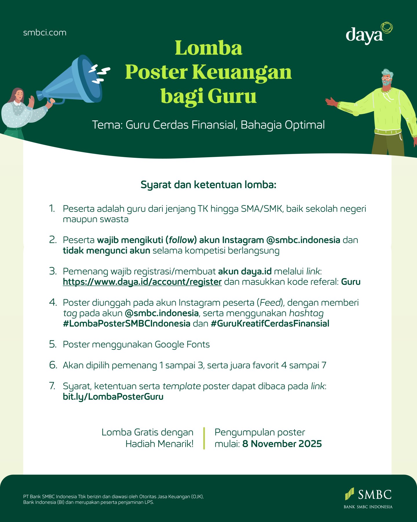 - Pengumuman pemenang diinfomasikan melalui Instagram @smbc.Indonesia