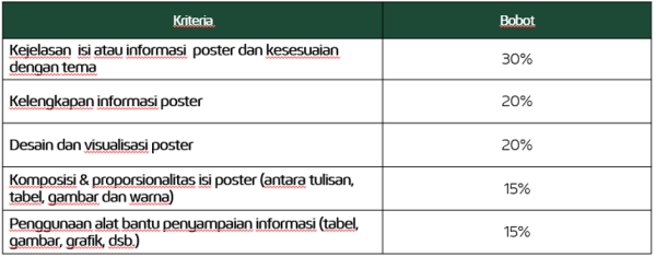 - Kejelasan isi atau informasi poster dan kesesuaian dengan tema