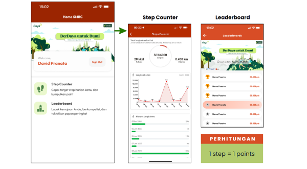 - Peserta dapat mengunggah aktivitas berjalan ke media sosial Instagram dengan tag akun @smbc.indonesia dengan hashtag #BerDayaUntukBumi #BersamaLebihBermakna, 10 foto terbaik akan mendapatkan hadiah menarik.