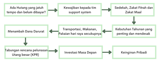 - Kemudian alokasikan untuk mudik dan keperluan hari raya seperti membeli baju lebaran secukupnya.