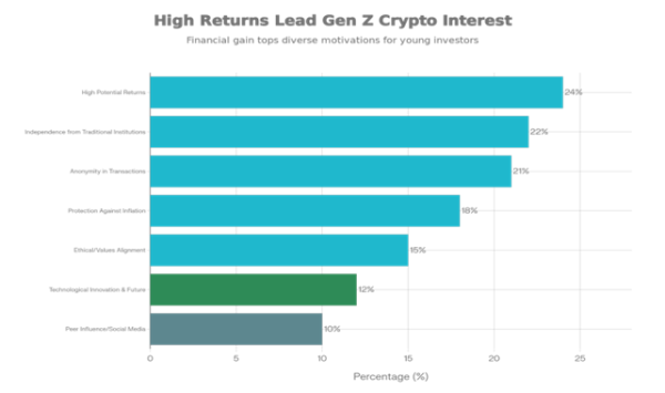 Bisa dibilang Gen Z begitu antusias berinvestasi di crypto karena kemudahan akses teknologi, ketidakpercayaan terhadap institusi tradisional pasca-krisis 2008 dan COVID 19, eksposure melalui media sosial dan komunitas online, ketertarikan pada teknologi baru (blokchain), perlindungan terhadap inflasi, dan peluang keuntungan yang tinggi.