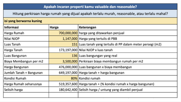 Salah satu cara untuk melihat apakah properti yang kita beli mahal atau tidak adalah dengan cara berikut: