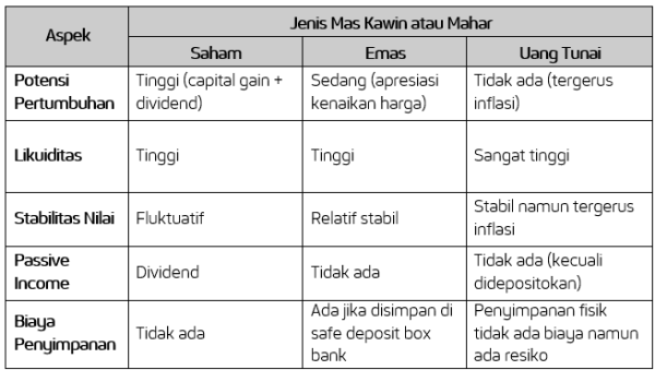 Perbandingan Saham dengan Mas Kawin Tradisional Lainnya