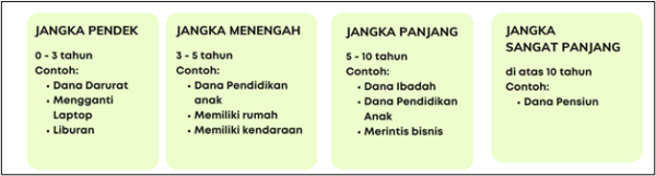 Tujuan investasi dapat bersifat jangka pendek, menengah, maupun panjang. Seperti digambarkan berikut: