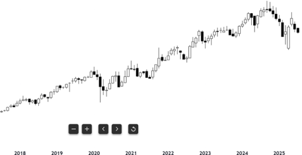 Ini adalah grafik pergerakan harga sebuah saham sejak tahun 2018 sampai 2025. Harganya semakin lama semakin menanjak. Investor yang membeli di tahun 2018 dan masih menyimpan sahamnya sampai saat ini, maka investasinya dalam posisi profit karena harga saat ini lebih tinggi dari harga beli di tahun 2018.