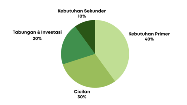 - Kebutuhan primer terdiri dari: kebutuhan untuk makan, tempat tinggal, transportasi, listrik, pulsa, internet. Dimana porsi kebutuhan primer memiliki proporsi sekitar 40-60% dari penghasilan.