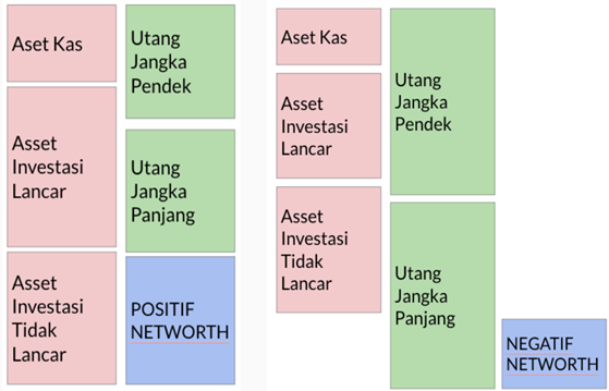 Net worth adalah kekayaan bersih, dimana rumusnya adalah total aset dikurangi total utang. Bila total utang kita kurang dari total aset maka bisa dikatakan positif net worth dan sebaliknya bila total utang kita lebih dari total aset kita maka dikatakan negatif net worth. Rasio keuangan yang sehat adalah maksimal total utang 50% dari total aset.