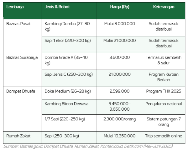 Sebelum kita hitung anggaran, berikut adalah referensi data harga hewan kurban di 2025: