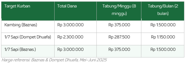 - Buka rekening/pos tabungan khusus kurban agar dana tidak tercampur kebutuhan lain.