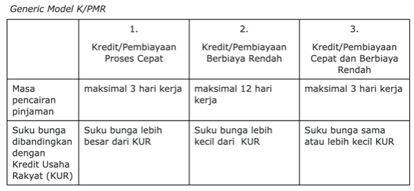 K/PMR adalah program kredit/pembiayaan yang ditujukan untuk memberikan bantuan kepada pelaku Usaha Mikro Kecil (UMK) yang memerlukan pembiayaan dengan proses cepat, mudah, dan biaya yang rendah. Tujuan utama dari program ini adalah untuk mengurangi ketergantungan pelaku Usaha Mikro dan Kecil (UMK) terhadap kelompok kredit informal atau ilegal seperti rentenir.