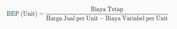 • BEP Unit: Menunjukkan jumlah unit yang harus dijual.