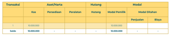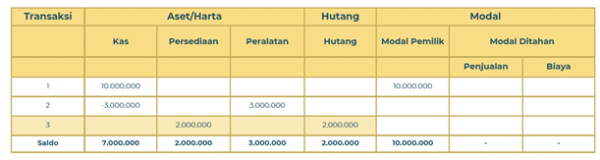 Dari transaksi ini, total aset perusahaan tidak berubah, tetap sebesar Rp 10.000.000, namun terjadi pergeseran bentuk aset dari kas menjadi peralatan.