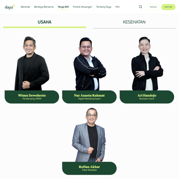 - Konsultasikan rencana bisnis dengan ahli bisnis di Daya.id