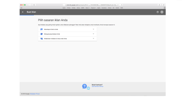 2. Kemudian akan masuk ke laman berikutnya, di mana Anda akan diminta memilih tujuan membuat iklan tersebut. Apakah untuk mendapatkan lebih banyak panggilan pelanggan baru, mendapatkan lebih banyak kunjungan ke toko fisik (jika ada), atau lebih banyak mendapatkan penjualan dan pendaftaran di situs usaha. Pilih yang paling tepat, sesuai kebutuhan.