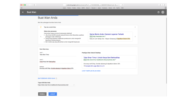 Jangan lupa mencantumkan link iklan disambungkan ke alamat situs bisnis, agar orang dengan mudah menemukan bisnis Anda.
