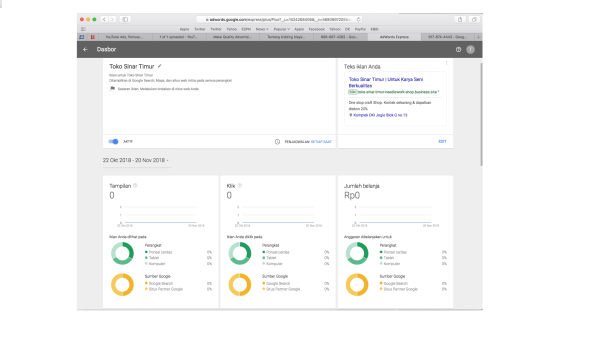 11. Setelah selesai mengisi data akan masuk ke laman selanjutnya, maka pendaftaran Anda telah selesai. Di hadapan Anda, muncul tampilan Kampanye dengan sejumlah kolom yang menunjukkan performa iklannya. Kolom ini nantinya yang akan jadi panduan didalam melihat bagaimana iklan bekerja, berapa jumlah riil dari hasil yang didapatkan dan lain sebagainya.