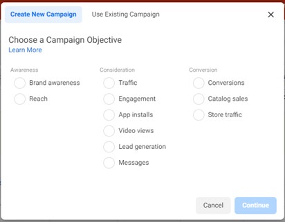 Objective yang Anda pilih akan menyampaikan ke Facebook mengenai tujuan dari campaign dan aksi apa yang Anda ingin audiens lakukan ketika melihat iklan Anda. Objective campaign yang Anda pilih memberitahukan Facebook apa yang Anda ingin orang lakukan ketika melihat iklan Anda. Berikut adalah daftar dari objective campaign Facebook Ads yang tersedia dan kapan waktu yang tepat untuk menggunakannya.