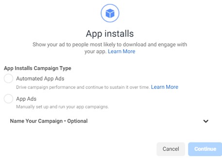 Objective campaign ini nantinya akan menampilkan iklan Anda ke audiens yang kemungkinan besar akan menginstall aplikasi Anda. Dengan mengklik pada iklan yang ditampilkan akan membawa mereka langsung ke app store untuk melakukan download aplikasi.Untuk mendapatkan hasil terbaik dari objective ini, Anda perlu untuk mendaftarkan aplikasi Anda ke Facebook dan mengimplementasikan SDK (Software Development Kit) yang memungkinkan Anda untuk melacak data event dari aplikasi Anda di Ads Manager. Campaign App Install sendiri memiliki 2 kategori yaitu otomatis dan manual.