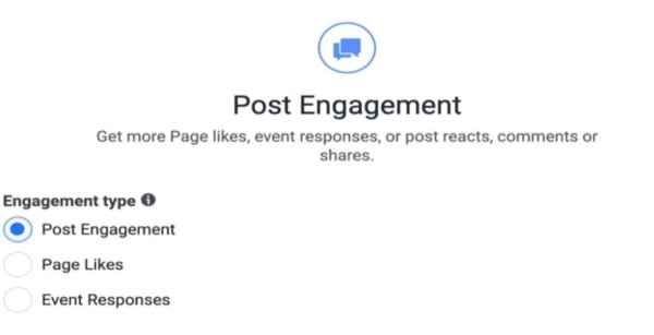 Jika tujuan utama dari iklan Facebook Anda adalah untuk meningkatkan engagement maka Anda dapat menggunakan objective engagement. Facebook akan menunjukkan iklan Anda ke target audiens Anda yang kemungkinan besar akan berinteraksi dengan mereka. Terdapat 3 tipe engagement dalam objective ini.- Post engagement