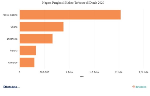 Mengutip Katadata.co.id, Indonesia merupakan negara terbesar ketiga penghasil kakao di dunia pada tahun 2020.
