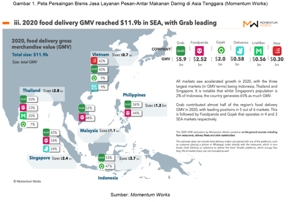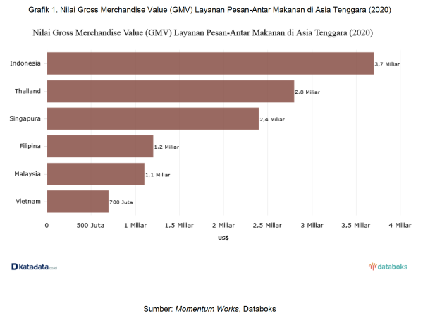Indonesia merupakan pasar besar dalam ekonomi digital di bidang pesan-antar makanan daring. Hal ini terlihat dari nilai Gross Merchandise Value (GMV) sebesar US$ 3,7 miliar pada 2020, tertinggi di Asia Tenggara. GMV adalah total nilai penjualan seluruh barang selama kurun waktu tertentu.