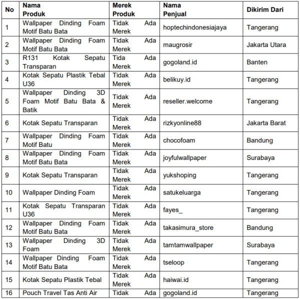 Kendati demikian, terlepas dari kontribusi produk impor yang lebih dominan ketimbang produk lokal terhadap daftar 30 produk terlaris di Shopee untuk kategori Perlengkapan Rumah, bisa dilihat melalui tabel 2 jika sama sekali tidak terdapat seller yang menjual mengirimkan produk asing/impor dari luar negeri.