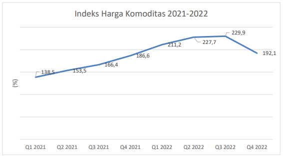 Krisis energi dan pangan menyebabkan harga beberapa komoditas global mengalami kenaikan dan meningkatkan laju inflasi global. Akibatnya terjadi dari penduduk dunia terhadap energi dan pangan. Harga komoditas dunia menunjukkan tren peningkatan selama Q1-2021 hingga Q3-2022. Berikut merupakan datanya: