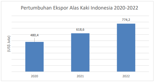 Industri alas kaki Indonesia berkembang secara pesat terjadi pada awal 1980-an seiring dengan perkembangan ekonomi Indonesia. Hal ini didukung oleh adanya investor asing dan pemerintah yang membuat kebijakan terkait dengan bisnis yang ramah serta membentuk Asosiasi Persepatuan Indonesia (APRISINDO) agar alas kaki Indonesia memiliki pengelolaan yang lebih baik. Organisasi ini diharapkan mampu menjaga perkembangan industri sepatu di segala aspeknya. Hasilnya pertumbuhan industri alas kaki dari tahun ke tahun mengalami peningkatan. Ekspor alas kaki Indonesia pada tahun 2020 sampai dengan tahun 2022 terus meningkat. Berikut merupakan datannya: