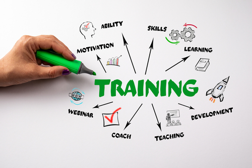 Kegiatan training berupa transfer pengetahuan atau skill yang disertai praktik, dengan tujuan meningkatkan skill atau keahlian tertentu, dan menambah pengetahuan serta membuat karyawan jadi lebih terampil. Training memiliki periode waktu tertentu, sistem terstruktur, ada penilaian akhir, dan biasanya diadakan dalam kelompok atau kelas peserta training.